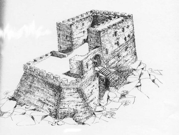 Reconstruction of the keep of the Acquafredda castle by Foisio Fois in the 60s