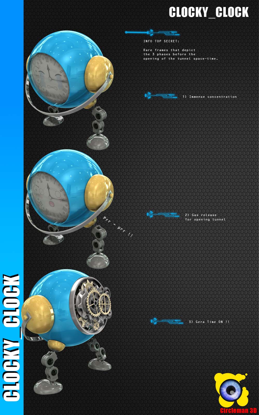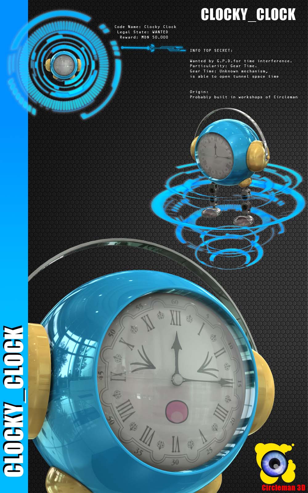 Clocky clock is a robot/droid able to move forward or backward in time.